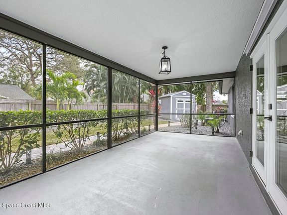 Situated on a large, lush corner lot in a quiet cul-de-sac at the back of beautiful, wooded Wickham Forest, you'll feel a million miles away, but you'll be convenient to US1; Wickham; I95, Eastern FL State College; gorgeous views of the Indian River Lagoon; fabulous restaurants, arts; shopping and golf; the new Sprouts; Wickham Park; beaches and Orlando! This home lives like a new build inside with its lux, modern renovations and lives like a tropical paradise outside with private back yard/lanai & outdoor living haven. The pavered, lighted pathway leads to a high-quality gardening shed. Pavers wrap around to the boat/RV pad behind the privacy fence and tropical landscaping provides an outdoor retreat including outdoor lighting package and front row seats to every launch! New roof 2023; water heater 2023; HVAC 2019, storm shutters and more. Great schools, restaurants and shopping nearby. This home is move in ready!