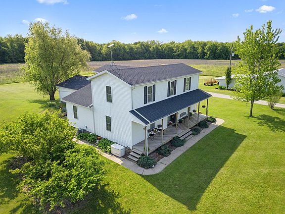 MINI FARM-Charming 4 bedroom Farmhouse on 46 Acres! Welcome to your country escape! This beautiful farmhouse, built in 1998, is full of warmth and character! Spacious and light filled interior with rustic charm. Whole home generator for peace of mind. New roof installed in May 2025. Formal dining room with sunny bay window. Large living room with French doors that open to a full length front porch. An oversized 2 car garage. A roomy kitchen with a pantry and plenty of workspace. Main floor laundry. Full basement that is usable family space as is, but could be a beautiful finished space. A large barn with lean-to, a huge garden area. 2.5 acres of woods and approx 40 acres of tillable land. This property has endless potential for farming, recreation or simply enjoying the quiet countryside
