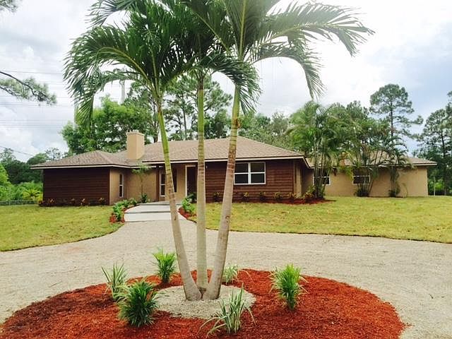Location, location, location! Totally remodeled 3 bedroom 2 bath , 2,850 square foot home just far enough from the hustle and bustle of city life to enjoy country living at its finest. Just minutes from all major south florida arteries (441/turnpike and I-95). Minutes from fine dining, Wellington Mall, Target, Walmart, Regal movie theater and more. Great circular driveway for 10+ cars. Home is equipped with hurricane impact windows, brand new 5 ton AC, updated water softener and system, property warranted against termite intrusion by Guarantee Floridian Inc. warranty transferable to new owner, septic drained and inspected, brand new ceiling fans and lighting throughout. Resort style bathrooms include granite countertops, double undermount sinks, solid wood vanities, and brand new