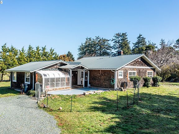 Classic country cottage with modern updates on almost acre surrounded by picturesque farm land and even distant ocean views! Miles of ocean beaches, hiking trails for exploring , Floras Lake for windsurfing and fishing , are all just moments away. This comfortable , well maintained , single level 3 bed 2 bath home has custom woodwork milled from the Cypress trees that encompass the property. The open floor plan is ideal for entertaining with friends. You can enjoy relaxing on the covered deck and patio or get busy in the greenhouse and detached oversized garage . Level property with flowering trees and plenty of room for a garden or parking for an RV. With this location you won't have to sacrifice peace and tranquility to be just a short ways from the local market, coffee shop , post office and farm supply. Perfect for a get-away or forever home.