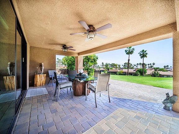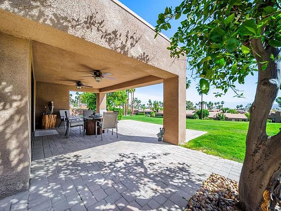 Nestled within the serene landscapes of Palm Desert, California, rests 47810 Quercus Lane, a well designed free standing condominium within the prestigious gated community of Ironwood Country Club. Offering a refined lifestyle amidst the desert's natural beauty, this remodeled residence embodies sophistication and tranquility. Approaching the property, you're greeted by waterwise landscaping and a paver driveway, setting the stage for the elegance that awaits within. This single-level home's exterior is Mediterranean-inspired architecture, seamlessly blending stucco exteriors and clay-tiled roofs with the surrounding environment. Step inside to discover a welcoming foyer that guides you to the heart of the home, a spacious living area adorned with a fireplace and framed by captivating views. Bathed in natural light pouring through oversized windows, this inviting space radiates warmth and sophistication, perfect for both casual gatherings and formal entertaining. The gourmet kitchen, boasting high end appliances, custom cabinetry, and a center island with granite countertops and bar seating, awaits you. Whether hosting intimate dinners or preparing meals for loved ones, this kitchen is designed to inspire your inner chef. The primary bedroom has a walk in closet and remodeled bathroom with dual sinks. Additionally, there are two additional bedrooms, one with a full bath. The third bedroom, ideal for an office or den. Then the second and third bedrooms both have sliding glass doors to an enclosed patio. Don't miss the convenience of the half bath just off the front hallway or the bonus golf cart garage door located to the left, front side of the house. Residents of 47810 Quercus Lane enjoy easy access to Palm Desert's premier amenities, including world-class golf courses, fine dining, shopping, and cultural attractions. Whether seeking a peaceful sanctuary or an entertainer's haven, this exquisite property epitomizes the essence of desert living.