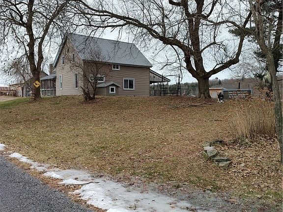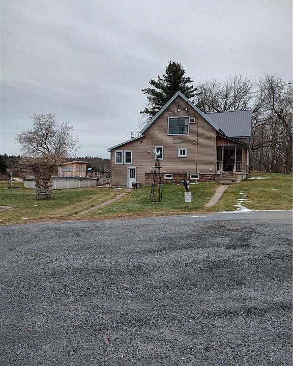 Welcome home to this 4 bedroom/1.5 bath country homes situated on 16.9 acres of land. Country living at its finest with this home. If serenity is what you are looking for in a home, then this one is a must see. It is located at the end of a dead-end road. The town plows the cul-de-sac at the end of the road. This property has a beautiful, covered deck which overlooks the open deck, above ground pool and shed that is a changing room. Owner had Amish made kitchen cabinets that have a lifetime warranty made for the kitchen. 1st floor living consists of the kitchen dining room which is spacious and offers an open living concept. The kitchen has an electric stove and also an old-fashioned wood burning cook stove. The living room and den/office, and primary first floor bedroom. The full bathroom and laundry room are on the 1st floor and Second floor has 3 bedrooms plus a bonus room with a bar and a slate pool table. Large barn has a set up for chickens, and 9 additional stalls. The main portion of the barn has a workshop garage area and additional rooms for tools and equipment. The pasture acreage does have a fence for the animals. This home has a full cellar with spray foamed walls.