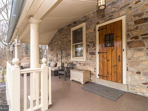 Bucks County road names are full of history & Cold Spring Creamery Road is no exception. Step back in time to the original creamery where the owners have made beautiful updates & thoughtful improvements to blend the old with the new in this unique restoration of the past. This one-of-a-kind historic stone home has been completely re-pointed, painted inside & out, had a new septic system installed, and offers incredible views of the surrounding 6 acres of woods, fenced pastures, field & pond. The covered front porch stretches the length of the home & provides living areas for both outdoor seating & dining. From this vantage point enjoy views of the fruit trees, chicken coop & vegetable garden with deer-fencing. Step inside the Dutch door to the cozy library with built-in cabinets, bookcases & distinctive fireplace, a perfect spot to relax and greet guests. An incredible view awaits in the great room with random width pegged floor, built-in cabinets & large window overlooking the rear of the property along with local wildlife who are frequent visitors. A powder room is conveniently located on the main level. The kitchen opens to the dining room featuring a fireplace and picture window with tremendous views of the pond, gazebo and covered bridge. A side door leads to a 2nd story deck overlooking another fenced area enclosing the entrance to the root cellar & slate patio. Completing the 1st floor, a separate suite with a full bathroom creates the perfect scenario for a 5th bedroom, guest suite or home office. A turned staircase leads to the carefully crafted renovation by Jay Maxwell on the upper level. A modern master bedroom addition features both a walk-in and a regular closet plus a full bath with soaking tub, walk-in shower & cabinet storage. 3 additional bedrooms have an abundance of closets, including 2 walk-in closets, and share a hall bathroom. Geothermal heat and 2-zone central air on 2nd floor, while gas heat & split A/C on the 1st floor keep occupants comfortable during every season. Wood floors & central vacuum throughout the home. High ceilings in the basement - which was the original working section of the creamery - now create a charming wine room, as well as a comfortable laundry room and the 2-car garage.~The root cellar~was completely rehabbed with a full stair case, and roofed structure added and includes a smoker.~New galvanized gutters with gutter guards were recently installed. A 1-yr home buyers warranty is included for extra peace of mind. This home is a garden spot and convenient location in one. A full history of the home is available upon request! Own a piece of Buckingham Township's history that is in perfect move-in condition!
