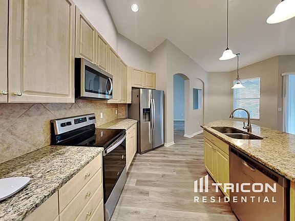 Coming soon! THIS HOME IS CURRENTLY BEING ENJOYED BY ANOTHER RESIDENT, BUT WILL BE AVAILABLE SOON. PLEASE RESPECT THEIR PRIVACY AND DO NOT DISTURB. Take a look at this beautiful home featuring 4 bedrooms, 3.0 bathrooms, and approximately 2,358 square feet. Enjoy the freedom of a virtually maintenance free lifestyle while residing in a great community. This home is professionally managed and maintained by Tricon Residential. - Please beware of leasing fraud! If someone other than an official Tricon Residential leasing agent attempts to rent you a home that is owned and professionally managed by Tricon Residential, please call our Fraud Prevention Hotline at 877.241. - This home is part of an HOA, and may have additional rental qualifications and policies. Please consult with your leasing agent for more details. - There is an application fee of $55 per occupant aged 18 or older. Completed applications are considered on a "first-come, first-served" basis. There is a holding deposit of $250 per home, which is credited to the approved applicant's first month's rent after move-in, refunded if the application is denied, or forfeited if the move-in is canceled by an approved applicant. Approved applicants are required to execute a Lease Agreement and submit the full security deposit within 48 hours after approval of the Lease. The Lease start date must be within 10 days after approval (certain exceptions may apply at Tricon Single-Family Rental Communities). This requirement is applicable even if an approved applicant has not seen the inside of the home. Tricon Residential is proud to be an Equal Opportunity Housing Provider. - Minimum lease term is one-year (13 mos. for homes in California). We collect a security deposit equal to one month's rent for all new leases. Resident pays for all utilities including trash, sewer, and water. - Animals approved with pet fee (except for new leases in California) and monthly pet rent. The following dog breeds and types, whether full or mixed, are prohibited: American Pit Bull Terrier, American Staffordshire Terrier, Bull Mastiff, Cane Corso, Chow, Doberman, Dogo Argentino, Pit Bull, Presa Canario, Rottweiler, Wolf, Wolf hybrids, any combination mix of the foregoing breeds, and any other breed or type that Landlord deems to have similar characteristics. Maximum of two animals allowed per home. - Pricing displayed reflects the lowest option for a given lease term and is deemed reliable but not guaranteed. Actual pricing will vary based on the options selected. We may revise the pricing for products and services we offer without prior notice. - A Pool Maintenance Fee of $150 per month applies to any home with a private pool. A Smart Home Fee of $21.95 per month applies to any home with Smart Home technology. A monthly Solar Fee will apply to certain homes equipped with a solar system; the fee varies by home. The energy generated by the solar systems can result in a credit to offset utility costs. An administrative fee is due prior to move-in. Other mandatory fees or charges may apply; review the Lease carefully for a full list of applicable fees and charges. - All Promotions are subject to the specific terms, conditions, and restrictions disclosed in connection therewith, and are subject to being changed or discontinued without notice. Photos are representative only and may not reflect the home's current appliances or other features. If you have specific questions about a home's features, please contact us. While we strive for accuracy, pricing, availability, and other listing information may include technical inaccuracies or typographical errors. - Other terms and conditions apply. Refer to our online Terms of Agreement for more details. - This home is equipped with in-home laundry appliances, which Tricon will provide and maintain. We charge $35 per month for homes with in-place washer/dryers. Available After Oct 3, 2024