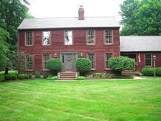 Picturesque setting for this impeccable 4 bed. Redwood salt box. Beautiful surroundings, makes you want to sit outside on the deck that overlooks many lovely trees. The inside has all hardwood floors except the kitchen and mud room, Kitchen has granite counter tops. Bathroom has ceramic & marble countertops in newly finished on sweet master bath. Cedar ceiling in kitchen $& family room. Crown molding. 1st floor library/study with built in window seat & bookshelves. New roof.