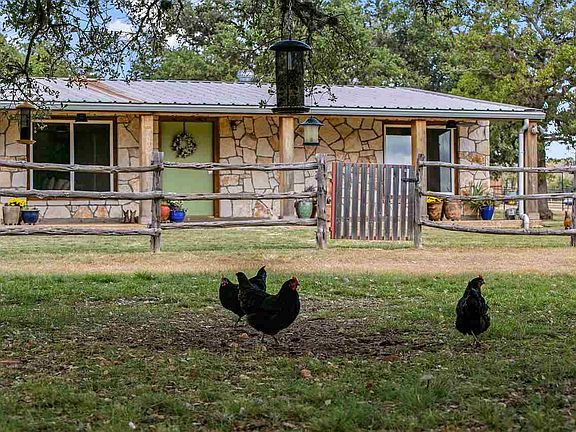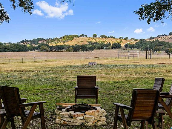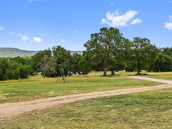 This 62.5 acre property is a horseman's dream offering everything you need and want in a ranch. As you enter the property, you're surrounded by manicured grounds and large oaks that open up towards the house, yard, and horse barn. The 4 bed/4 bath rock home is +/-1800 square feet finished with a cozy farmhouse feel. The living area is open to the kitchen, and each bedroom hosts it's own bathroom. The front porch extends the entire length of the home, and makes for the perfect place for morning coffee with amazing views. Outside the yard and adjacent to the house, you will find the firepit area and 4 stall horse barn with a finished office inside. The stalls are large with attached runs for plenty of room for the horses. On the back side of the barn is the riding area that can be easily converted to a roping or covered arena. The riding area overlooks the most gorgeous rolling field you have ever seen. After driving through the field, you will come to a wooded area that makes for terrific hunting with whitetail and axis being plentiful. There is a small stock tank on the property that holds about 4' of water consistently. With nothing but hilltops in view, you feel secluded from the rest of the world.
