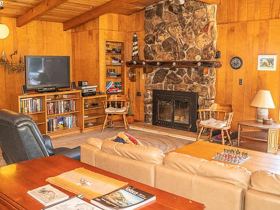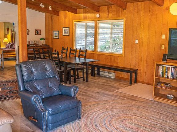 Ocean views from this two level home in the heart of Neskowin. Stone fireplace, open floor plan with exposed beams, lots of decks. Designed to sleep up to 10 people, currently in rental pool (check with county for future rules). Close to beach access and miles of beaches.