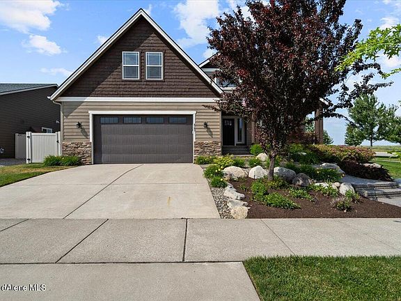 The popular Sedona plan by one of North Idaho's Best Builder with main floor master suite, soaring volume ceilings, large windows, huge bonus room, tons of upgrades, which include 4 bedrooms, 2.5 baths, Floor to ceiling beautiful stone gas fireplace, main floor master with soaker tub, private shower, double sinks and walk in closet. Upstairs boasts a beautiful ''cat walk'' looking over the living room and 2 bedrooms/1 full bath & a large bonus room that could be a bedroom as well. Main floor office (could be bedroom), Open Kitchen with granite counters and stainless-steel appliance, large dining area that leads to your covered back deck overlooking your fenced backyard with soothing fountain and shed that has electrical as well. Gas Forced air, air conditioning and a stunning front porch for your morning coffee or evening cocktail! Stunning Landscaping with full drip system and sprinklers front and back too!