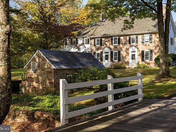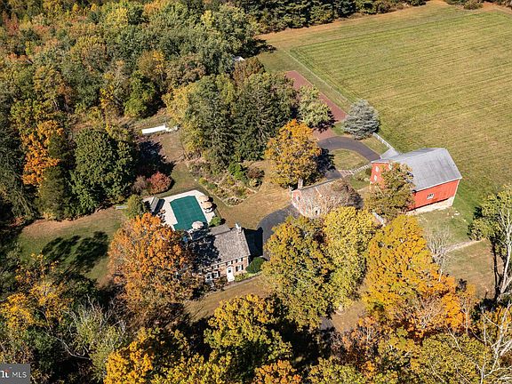 This is the one you’ve been waiting for. Available for the first time in almost 50 years, Green Valley Farm is an excellently maintained estate property enjoying a bucolic Bucks County setting on two lots totaling nearly 25 acres. Just minutes from downtown New Hope and Doylestown, PA, the buildings are set far from the road. Enter along a magnificent tree-lined drive, traverse a charming bridge and the Pine Run creek to arrive at the courtyard bordered by a stone Manor House, Carriage House and a classic Bucks County Bank Barn. The Manor House dates back to 1760 with a massive dressed stone fireplace, 4000 ft.² of living space, and two main bedroom suites. The two-story Carriage House contains up to three bedrooms/2 baths and an expansive rustic living area with charming wood beams and rafters. The classic Bucks County Bank Barn has been finished as an artist studio and gallery in the 1980s, while the first level is perfect for your animal friends. Garage space is also available in this building. From each building enjoy magnificent views of fenced and open pastures, the Pine Run, and mature varied treescapes. Other buildings on site include a highly usable oversized three-car garage, a classic rectangular pool, a fenced vegetable garden with a simple greenhouse, and working garage. The property is surrounded by 50 acres of preserved land and other large parcels for complete privacy. The property has two parcels which include the main estate and a 1.88 acre separate building lot.