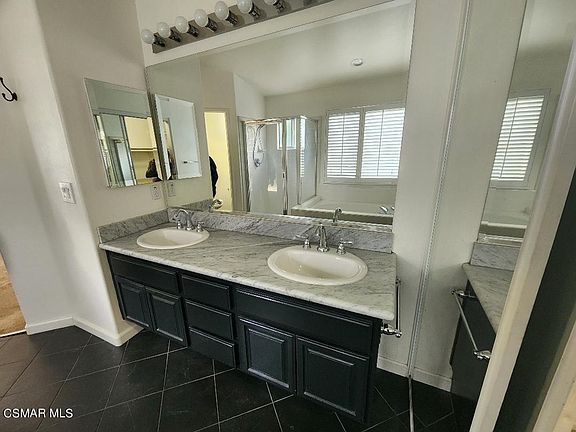 Look no further for the perfect home... this is it! Modern 3 bedroom + 2 3/4 bathroom home in desirable Oak Park, featuring 1 bedroom + bath downstairs and 2 primary ensuite bedrooms upstairs. This lovely, light and bright home features 3 bedrooms, and 2 bathrooms with laminate wood flooring downstairs, light carpet upstairs, and plantation shutters throughout. Vaulted ceilings. Primary bathroom offers dual vanity sinks with granite counter-tops, tile floors and separate soaking tub, shower and water closet. Mirrored wardrobes in bedrooms. Quiet and private backyard. Attached 2-car garage with built-in shelves and cabinets. Community pool & spa. Located near award winning schools, parks, recreation and hiking trails. Don't delay, call today!