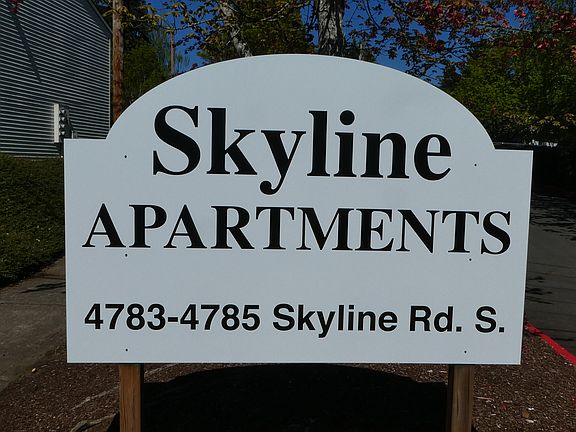 Get $250 off your first full month's rent for this spacious 950 square foot 2 bedroom, 1 bathroom apartment is in a quiet and convenient, family friendly neighborhood in South Salem. Skyline Apartments is a well maintained, small 20 unit complex that is close to bus service, and convenient to shopping, restaurants, Sprague High School, and Corban University. You will LOVE living in this quiet yet friendly environment. Unit 203 features: * Large living and dining rooms * Wood flooring throughout *Cathedral ceiling in living room and kitchen * Modern kitchen with dishwasher and disposal * Private deck with an extra outside storage closet * Full sized washer and dryer in the unit * Large bathroom with tub * Assigned covered/ carport parking * TONS of extra storage spaces Owner pays water/sewer, garbage, and outside lights Pet deposit/ pet rent policy is available One year lease - limit of 4 occupants Refundable security deposit of $1000 with clean application Owner pays water/sewer, garbage, and outside lights. Tenant pays electricity and internet. Pet deposit/ pet rent policy is available One year lease - limit of 4 occupants Refundable security deposit of $1000 with clean application