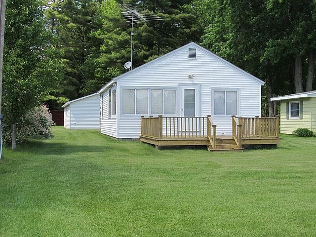 Affordable lakefront living with 40' on All Sports Wiggins Lake. A beautiful view comes with this cute one bedroom cottage with mostly knotty pine walls and drywall ceilings. Level lot to the water with sandy swimming and steel seawall. Includes a 2 car detached garage and shed. Enjoy a nice cookout with the family on the 12x16 deck overlooking the water. Just in time for summer!!