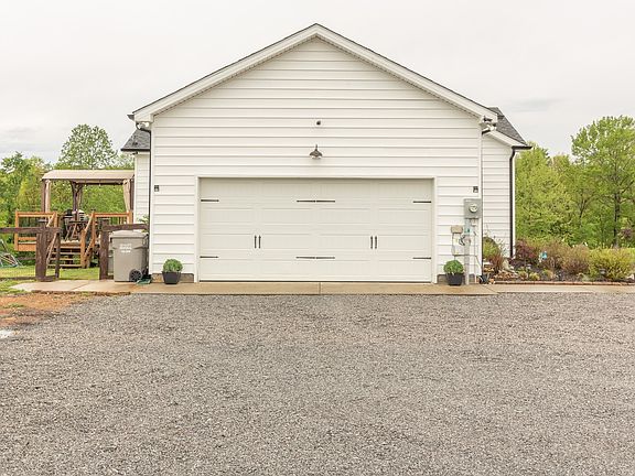 This beautiful home sits on a peaceful and serene 3.88 acres but just a short 1.5 miles to the interstate. Spacious eat-in kitchen with white quartz countertops and gray cabinets. Spacious primary suite with a great primary bath. There is a 2 car attached garage with an epoxied floor! New detached 24X30 garage has room for a large truck or work room, has separate music room with storage area above. The new garage is insulated with a large roll up door. Backyard is partially fenced and goes down into the woods with a path to the creek. Beautiful landscaping with lighting. Encapsulated crawlspace is partially floored and storage space has been added. Water filtration system stays with the home. No HOA fees. Don't miss this one!