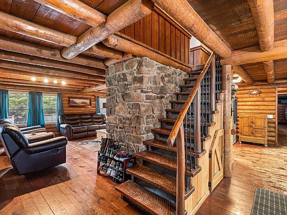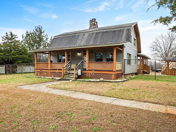 This home is bubbling over with charm! Three bedrooms and 2.5 baths with a first floor owner's suite and two bedrooms plus a bonus room upstairs. Need storage? No problem. So many deep closets are offered in this home. The large kitchen opens to the dining room and oversized living room. Set on over an acre of land, with a huge three car garage that includes workspace galore, the lot is flat and fenced. This home has tons of log cabin character both inside and out. Rocking chair front porch feels like it’s right out of a story book. The exterior has been sided to help reduce maintenance costs. Walnut, cherry and pear trees! Water heater and Heat pump less than 2 years old!