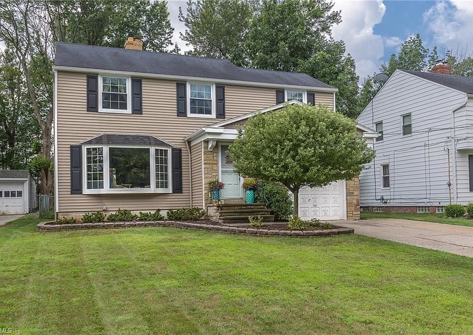 Beautiful 3 bed, 1 1/2 bath Colonial in South Euclid. Take note of the excellent curb appeal as you walk up. Enter inside to the large living room with wood burning fireplace and hardwood flooring. Eat in kitchen with all appliances included and newly updated half bath round out first floor. Upstairs boasts 3 large bedrooms and a full bath. Partially finished basement perfect for entertaining and a large utility room. Fully fenced backyard with stamped concrete patio and newly built shed make for great relaxation outside. Updates to the home include newer siding, windows, gutters and electrical panel. Home Warranty Included!!