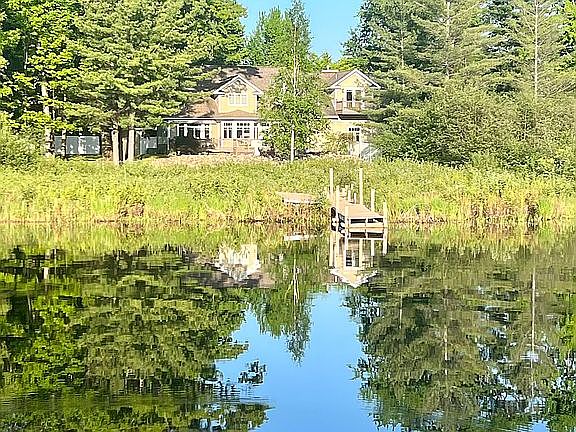 Why vacation when you can own the perfect custom built lakefront home? Maybe the lake water is much too cold and you would prefer to relax in the heated In-ground swimming pool while enjoying the 30 foot deep private lakefront setting. This home has it all. If you tire of the private lake, the boat launch to Lake Mitchell is right around the corner. You are five minutes from downtown Cadillac with national forest just down the road. Inside the home you will find granite and marble countertops, Viking appliances, main floor master suite with sliding doors to the covered wrap around porch, and 2 gas fieldstone fireplaces. The massive bedrooms all have walk in closets and the second story family room (could be used as a 4th bedroom) has a wet bar and balcony to enjoy the beautiful lake sunsets. This beautiful home is protected under a brand new roof as of May 2025 with a transferable warranty. The high speed internet allows you to work remotely without leaving the paradise. If this isn’t enough, there is a bonus 42’x60’ finished pole barn to store all the toys, play a game of pool, or basketball. There is also an outside basketball area and lots of space on the beautifully landscaped 3.5 acres.