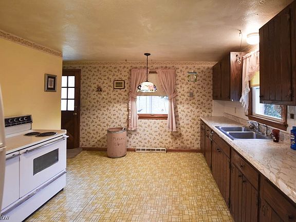 Don't miss out on this incredible opportunity to own an all brick bungalow on nearly 23 acres of land! The classic floor plan offers an applianced eat-in kitchen with a convenient pantry for your storage needs and a good sized living room with a picture window and ceiling fan. Two of the bedrooms are on the main level near the full bath with a tub. Upstairs offers a 3rd bedroom with a tall ceiling and ample space to divide into another bedroom or playroom. The full unfinished basement adds a fireplace with brick surround, laundry with washer and dryer included plus a deep freezer. Walk-up access to the attached 2 car side load garage with the option of wood stove heat and water makes for easy storage of larger items. Outside you'll appreciate the country setting with multiple sheds for lawn equipment and outdoor toys. Additional perks of this property are the benefit of free gas when the temperature is above 20 degrees and a backup generator for the well pump and necessities. Just a