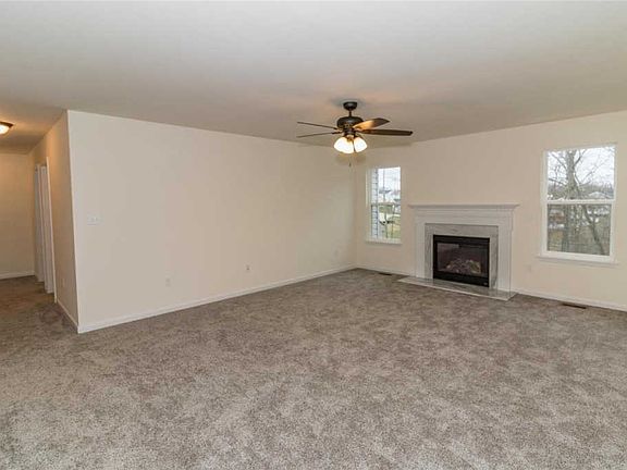 Looking for a newly constructed home, but don't want to wait? This ranch was completed and never been lived in. Owner paid $272900.00 and there has been 2 increases since then. IT IS READY TO MOVE INTO and available for a fast closing if needed. This spacious great room houses a gas fireplace with stunning marble surround and opens nicely to the breakfast room and kitchen. Enjoy a large kitchen with shaker style white cabinets, subway tile back splash, oversize stainless steel sink, stainless appliances including gas range w/hood, plus 2 pantries!! There is a convenient main floor laundry rm that leads to the 2 car garage. The master bedroom has a walk in closet and ensuite bathroom w/ soaking tub, separate shower, linen closet and wide vanity. The walk out lower level has a rough-in bath, full egress window, sump pit & pump and is for your finishing touches. Outside you'll find charming curb appeal, patio and lovely yard that backs to trees.
