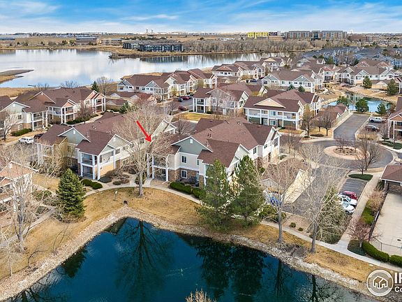 A private retreat in a premier community! Set in the sought-after Lakeshore at Centerra community known for its vibrant lifestyle and exceptional amenities, this top-floor, end-unit condo offers a perfect mix of luxury, comfort, and convenience, making it an ideal living space or a lucrative investment opportunity. As you enter, you're greeted by an open-concept layout that features high, vaulted ceilings and a cozy fireplace, which forms the centerpiece of the living area, crafting an inviting atmosphere for relaxation and entertainment. The kitchen features a wraparound counter that provides ample space for meal prep, complemented by gleaming white appliances and an abundance of storage. Breathe in the fresh air on your private balcony and take in serene water views, while mature trees provide shade and privacy, creating a peaceful outdoor escape. A storage closet ensures your belongings stay secure and out of sight, keeping your living space open and organized. The primary suite is designed for comfort, featuring high-quality laminate flooring, an ensuite bathroom, and a walk-in closet. The additional bedroom is ideal for guests, a home office, or any other use that suits your unique needs. A 1-car garage beside the unit plus an additional parking pass means hassle-free parking for you and your guests. Dive into the resort-style amenities offered by the Lakeshore community, including a pool located just beside the unit, a clubhouse, and scenic walking trails around Houts Reservoir and Equalizer Lake. Additionally, with Centerra's shopping, dining, and MCR Hospital just nearby, convenience is built right into the lifestyle. Excellent income opportunity with 30-day rentals allowed, adding a layer of potential to your investment. Additional updates include new washer & dryer and new dishwasher (2023), new hot water heater and refrigerator (2024), and new Lennox furnace and air conditioner (2025).