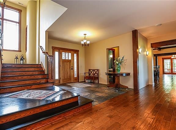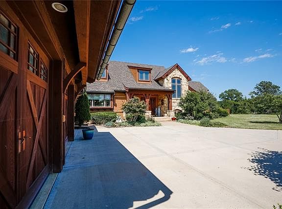 Don’t miss out on this this 7-bedroom craftsman style home with some old-world flare on a little over 117 +/- acres, carefully designed to fit into its country setting with comfort and entertaining in mind. The hardwood floors, granite counter tops, stonework, vaulted ceilings, and beautiful custom beams throughout make it a one of kind. The huge open floorplan kitchen contains Wolf commercial grade stove/oven, sub-zero built-in refrigerator, island breakfast bar and an exceptional amount of cabinet space. All bedrooms have ensuite bathrooms, 3 with private baths and 4 bedrooms share 2 jack and jill baths. All bathrooms have walk-in showers and/or jetted tubs, and each room has an over-sized walk-in closet with built in closet systems. The master closet was thoughtfully designed with a multi-drawer island and an amazing amount of hanging/shelf space. Entertainment opportunities are designed into all 3 levels, with a loft on the top floor, open floor plan on the main floor through the kitchen and hearth room, an enormous open area on lower level, as well as a hide-away kids play area under the stairs. Storage space has been intelligently designed into every room in the house and is complimented by temperature-controlled storage room, 2 attic storage locations, an oversized mechanical room, and a solid concrete tornado shelter/saferoom. The laundry is on the main floor attached to the mudroom, but there are also hook-ups on the lower level. There are 3 zoned HVAC units, water softener, and a hot water circulator. All gas appliances are supplied by a licensed natural gas well on the property, as well as a self-starting whole house generator. Sitting on the back patio you can watch deer walk the around the pond or geese and ducks land on the water. The forest just beyond the pond is loaded with wildlife and game trails, perfect for hunting and nature walks. Across the road is access to the Prairie Spirit Trail. a 52-mile-long hiking, biking, and equestrian trail.