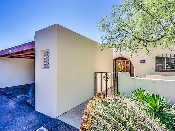 Don't miss out on this Rare Opportunity to live in the Highly Desirable Via Entrada Townhomes, nestled in the foothills with Catalina Mountain Views. One of only 8 end units, this 2 BD, 2 BA, 1,591 SqFt townhome has vintage flare and is extremely spacious with substantial Storage Space and an abundance of Windows to let in the light and capture the Views that surround it. Attached is a 2 Bay Carport with 2 Storage Rooms. The gated front courtyard provides privacy yet an open feeling to enjoy the environment. Upon entry, you will be delighted by the spaciousness of the large L shaped Great Room with back patio access, a gas Beehive Fireplace, and large Dining area. This townhouse is perfect for entertaining friends and family, with a Kitchen that will accommodate all your cooking needs. A unique feature to this townhome is that it also offers a Bonus Room, which can be used as an office, fitness room, art studio, play room, or to accommodate extra guests. Laundry is conveniently located in hall, providing easy access from both bedrooms. The Master Bedroom features 2 large closets, access to the front courtyard, and an En-Suite Bath. The Hall Bath is conveniently located next to the Guest Bedroom, featuring a large walk in closet and back patio access. The backyard is private and nestled into a beautiful desert foothill creating a secluded private environment, and features a large Covered Porch with storage, an extended brick patio, stone sitting wall for trees and flowerbeds. Backyard gate enters into 1 of the 4 natural Desert Gardens, where you can sit back and enjoy the wildlife that resides here. Truly a hidden oasis in the desert, with a Community Pool surrounded by a spectacular desert garden, with charming walking paths throughout. Location! Location!Location! Via Entrada Townhomes are conveniently located close to the University of Arizona, shopping, dining, and so much more. If you are an outdoor enthusiast, there is an abundance of opportunities for walking, hiking, or biking. Rillito Farmers Market and the loop at the Rillito River are just walking distance away. As you can see, Via Entrada is sure to please no matter your interests or lifestyle.
