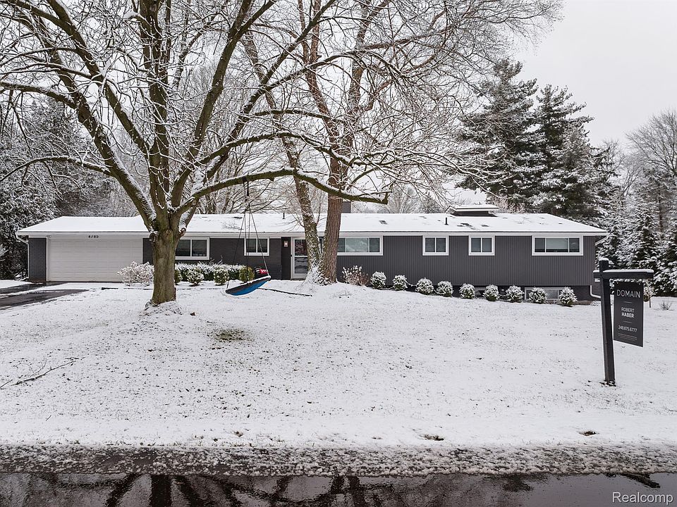 This charming 4-bedroom, 3-bath ranch-style home nestled in the sought-after Bloomfield Hills School district is a must-see! This beautifully updated Mid-Century Modern gem boasts a warm and inviting ambiance with a double-sided fireplace in the great room, creating a cozy focal point for family gatherings. Enjoy your morning coffee overlooking the private pond. The finished lower-level walkout, complete with a fireplace, adds valuable living space and versatility to your home. Natural light fills every corner, highlighting the clean and well-maintained interior. With a 2-car attached garage and a beautiful yard, this residence offers practicality and aesthetic appeal. If you're seeking an amazing home in a great location with the area's best schools and four bedrooms, schedule a showing today and make this Mid-Century Modern ranch yours! BATVAI