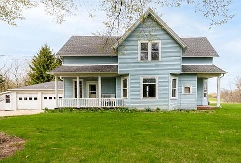 A classic farmhouse situated on 5 acres is waiting for you. Your family will love the house size with almost 2,500 sq ft and 5 bedrooms. Old meets new with a claw foot tub, antique vanity, a modern kitchen with updated cabinets & appliances. The house was built in 1885 and has that old world charm. This farmhouse has a bonus with a newer block basement from a 1956 relocation. The first floor has a large living & family room with stunning sunset views. Along with the kitchen with pine hwfs., bedroom, full bath & laundry room complete the first floor. Four spacious bedrooms with coveted walk-in closets & 2 baths are on the second level. Did I say there are 5 acres with a view? There is also a pond down the hill with abundant wildlife. Sit on the porch swing and enjoy your new home today!