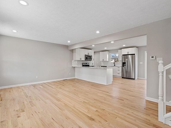 Wow! Beautifully renovated 4 level split on 1.34 acres in Sunbury. Great curb appeal with new siding and charming front porch. Inside you will find beautiful wood floors with a natural matte finish. The kitchen has been opened up and boasts new white shaker cabinets, white subway tile backsplash, new stainless steel appliances and large peninsula with marble countertops. Upstairs you will find 3 good sized bedrooms, including primary bedroom with updated en-suite bath. Additional living space can be found in the lower level family room with wet bar, perfect for entertaining. Further updates include new windows, new garage door, new patio & 2 additional updated full baths. Owner is licensed real estate agent in the state of Ohio.