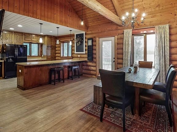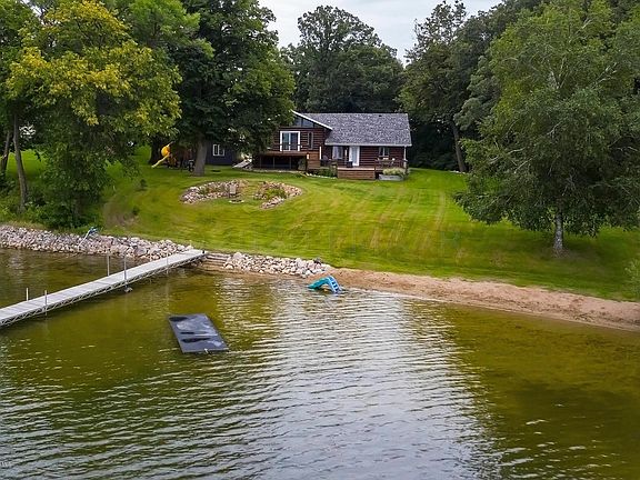 One of a kind Log Cabin home on over an acre lot with 300+ feet of shoreline on Tamarac Lake. Upon entering the home, you are greeted with vaulted ceilings and views of the lake through the dining room window. The large kitchen has plenty of counter space and leads to a large laundry room/mudroom area. There is also a half bath with rough in for future shower on the main level. The upper level boasts beautiful vaulted ceilings and a wall of windows facing the lake. Nice sized master bedroom with walk-in closet and full bathroom. There is also a 2nd bedroom. The unfinished basement has potential for 2 bedrooms, rough in for bath and large family room. Enjoy sunsets on the west facing 2 tiered deck or down at the fire pit. Opportunities like this don't come around very often.