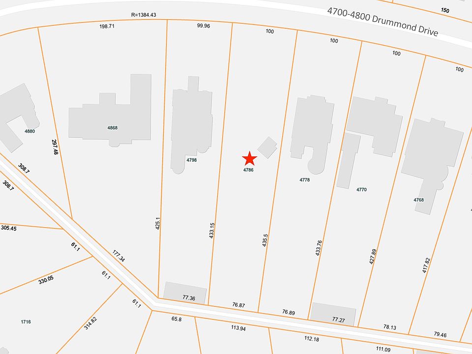 Build your dream castle on this prime 38,333 sf property on the high side of prestigious Drummond Drive with EXCELLENT FUNG SHUI. Offers potential water and mountain views. This expansive lot features 100 ft frontage and a south-facing backyard. Flexible R1-1 zoning allows for 60% FSR Single-family (23k sf !!!) plus 2000sf Laneway house, or multiplex combinations up to 6 units. Close to top school catchments, renowned private schools, UBC, golf courses, Jericho Park, and Locarno Beach. Next door 4778 Drummond also for sale so possible to assemble 76,700 sf (1.76 acres !!)