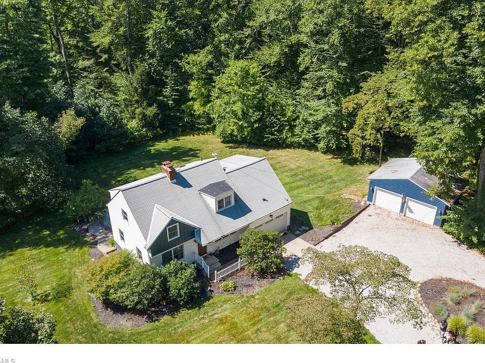 Welcome to this updated charming Cape Cod in Bath, Ohio located on beautifully wooded lot 1.76 acres on a quiet cul de sac! 3 1/2 car garage! This home offers 3 spacious bedrooms upstairs and a balcony off the Master bedroom looking over the property. This house also features a family room with fireplace, formal dining room, newer updated eat in kitchen and Florida room. The walk out lower level rec room is newly updated with fireplace. 1 1/2 car attached garage and 2 car detached garage. Relax on the back patio or talk a walk in the trailed woods. Revere Schools!!