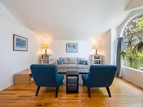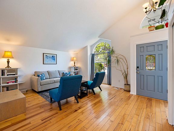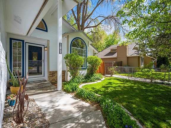 Recently updated home in a prime location in the popular Jordan's Landing. Just minutes from downtown Boise, foothills hiking and the Boise River this home backs to a creek and Cynthia Mann Elementary. The spacious and tranquil backyard is in a beautiful setting boasting trex deck, a serene water feature, footbridge pathway and just on the other side of the fence/gate you'll find a creek bustling with wildlife. The meticulously maintained 3 bed, 2 bath home welcomes you with vaulted ceilings and an abundance of natural light, creating an airy and inviting atmosphere throughout. With two living spaces and somewhat open floor plan, the kitchen features quartz countertops, a convenient pantry, and sleek breakfast bar—perfect for casual dining or entertaining. Step into the spacious primary bedroom and indulge in stunning peakaboo foothills views. Pamper yourself in the ensuite bathroom featuring double vanities and walk in shower. The large lot includes a shed, garden space and RV parking. No HOA.