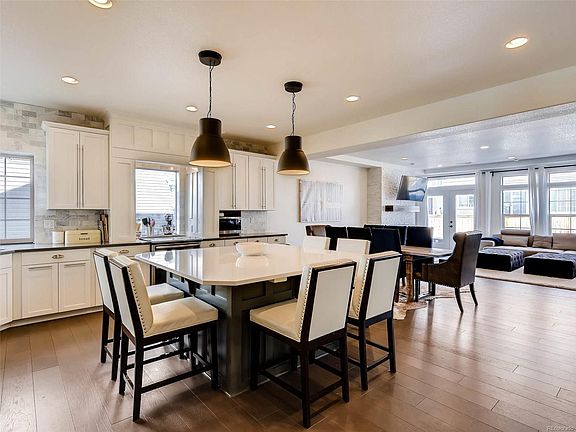 Reduced price on this stunning home with full finished basement; beats the rest with almost 3900 square feet finished. Upgrades feature extensive wood floors on main level, fantastic kitchen with massive center island, high end cabinets, quartz counters tile back splash to the ceiling, double ovens, stainless appliances and glass pantry door. Spacious dining room opens to the great room with stacked tile fireplace. French doors lead to the back yard stamped concrete patio with wood burning fireplace. Master suite with work out area, private bath with over-sized spa shower and walk-in closet. 2nd bedroom with 3/4 bath works as a study or guest suite. Laundry on the main with barn door. Upstairs is a loft, full bath and bedroom 3. Huge finished basement perfect for theatre room, pool table and more plus the 4th bedroom and 4th bath. Rare 3 car garage with frosted glass doors perfect for light and privacy. Cherry Creek Schools. At $122 for 3894 total sq. ft. finished this is a steal.