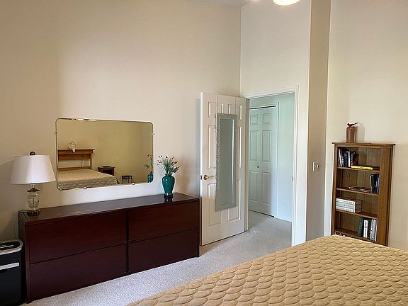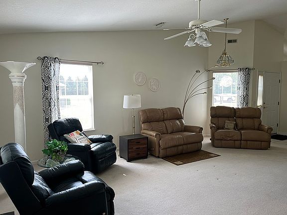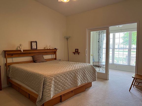 This spacious one-level 2 bedroom, 2 bath condo is an outside west-end unit facing nature. The open floor plan is light and bright, featuring cathedral ceilings and views out three directions. Master bedroom has a walk-in shower, walk-in closet and a sun room lounging area. Unit has a one-car attached garage. Low HOA fees cover lawn service, snow removal and all exterior maintenance from studs outward. Club house is walking distance hosting many social activities. This HIGH-END condo will go fast. Appliances and furnishings are negotiable. Viewing by appointment.