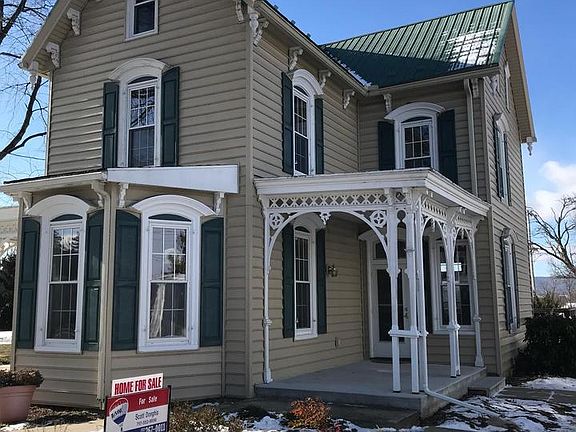 Charming 1880 Victorian Home.New paint & carpet.All windows replaced.Newer metal roof & furnace.Custom Roman Shades.Spacious home with 9' ceilings,over sized rooms.Wide wood molding with rosettes throughout.Exterior boasts two side porches & beautiful Victorian,gingerbread trim.Rear of home provides pastoral, gorgeous views of the Tuscarora Mtns. Rear deck.shared D/W & Rear alley access.