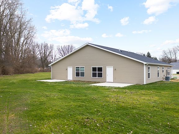 Freshly painted, vinyl flooring, bedrooms freshly carpeted, ranch style duplex with attached garage, includes back patio space. Appliances included:refrigerator, stove range, dishwasher, and microwave. Washer and dryer unit included. LED lighting, ceiling fans, and central air. Tenant is responsible for all utilities: gas, electric, water/trash Lawn/grass cutting is provided with rent. 1 year lease option.