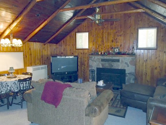 IMMACUATE LOG CABIN-McKinley. This 2 bed 1 bath log cabin offers a perfect combination of old and new with its cut stone fireplace, open log beams and knotty pine interior. It has a new steel roof, gas furnace2549., water heater and newer windows and doors. It’s walking distance to the AuSable River and joins federal land for easy access to the trail system. It also features a garage to store your toys and a guest cabin! $58,000 A-2549