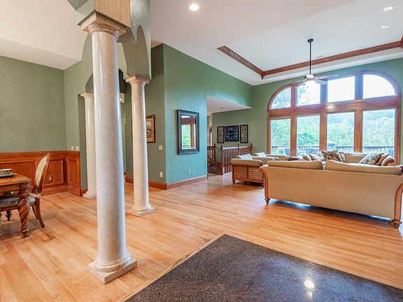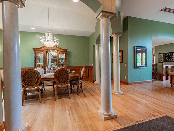 New price well below appraisal!! Spectacular custom stone and brick home with approx 6,000 sq ft. Step in to granite flooring, arched ceilings, and a magnificent view through the seemingly endless windows looking out to your private backyard. Front office. Large formal dining. Grand master suite with fireplace, deck access, dual walk-in closets, double vanities, jetted tub and private shower. Great room with 14' trayed ceilings, gas fireplace, custom shelving. Kitchen spoils you with an enormous walk-in pantry, center island, double ovens, smokeless grill, and granite counter tops. Mud room and laundry finish main level.Lower level is all about FUN with two large entertaining areas complete with gorgeous stone arched bar area. Craft room, music room,