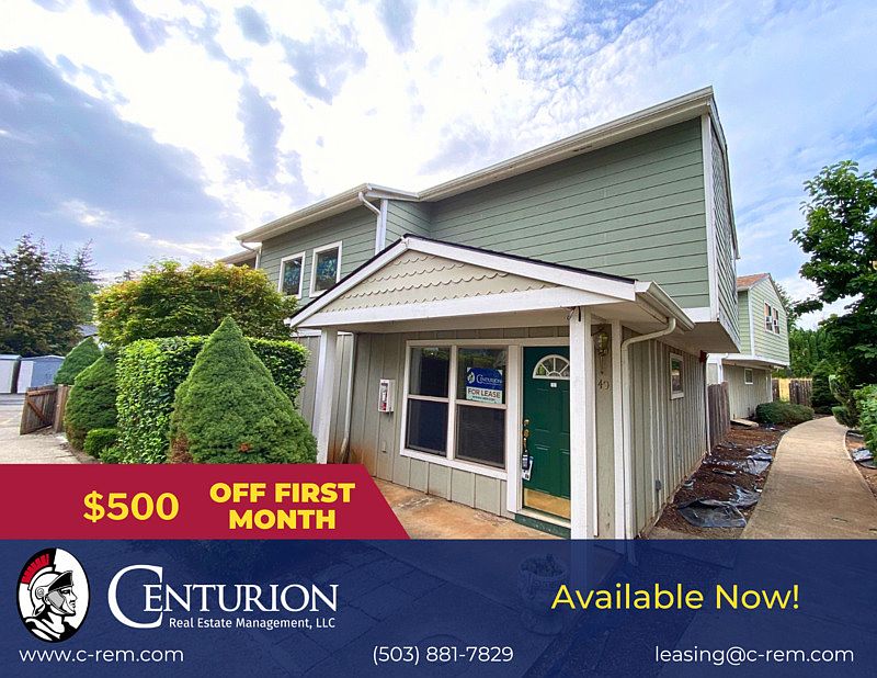 Terms: * Rent: $1,595 + $50 RBP = $1,645/mo * Deposit: $1,600 (On Approved Credit) * Application Fee: $68/per adult 18+ * Tenancy: 1 Year Lease * Heat Type: Electric * Note: Non-Smoking Property Pet Policy: * Dog Allowed * Cat Allowed * 2 Pets Max Under 25lbs * $400 Additional Deposit per Pet * Pet Rent May Vary on Paw Score (starting at $45 up to $100) * All applicants must complete the Screening Process (https crem. Utilities: * Included: Water/Sewer/Garbage * Tenant Paid Utilities: Tenant is Responsible for Electric, Gas (If Applicable), And all Other Utilities Amenities: * Refrigerator * Stove/Oven * Microwave * Dishwasher 2 Story Townhouse: Laundry: * Washer/Dryer Hookups Water Type: * City Sewage Type: * City Landscaping * Owner Responsibility Parking * 1 Assigned Parking Spot/Off Street Parking All Centurion Real Estate Management, LLC residents are enrolled in the Resident Benefits Package (RBP) for $50/month which includes renters insurance, HVAC air filter delivery (for applicable properties), credit building to help boost your credit score with timely rent payments, $1M Identity Protection, move-in concierge service making utility connection and home service setup a breeze during your move-in, our best-in-class resident rewards program, and much more! More details upon application. 1. Move-in Special ONLY applies to the current month. (IF APPLICABLE) 2. The application process normally takes 1-3 business days. 3. Must see the property physically before the deposit is made. 4. If you have a pet, ESA or you don't have a pet you must register at https crem.5. Apply to one property at a time. Pet Policy: Notice to all residents and applicants, everyone must complete the screening process. This is not only for pet and animal owners; it applies to residents and applicants who do not own pets. The pet policy includes caged animals and pets. You will not be moved into the unit without this completed. Prices are subject to change, we do not guarantee prices, items change, and errors occur. If there is a discrepancy between a price online and a price in the office, supervising property manager shall have the final say. *Due to overwhelming demand we may be unable to respond to your rental inquiry.* INTERESTED IN THIS PROPERTY? * Properties are on a self-showing lockbox and each listing specifies how it is viewed. * Feel free to drive by the property to check it out. "This information is deemed reliable, but not guaranteed." Centurion Real Estate Management, LLC 1365 Commercial St. SE Salem OR 97302