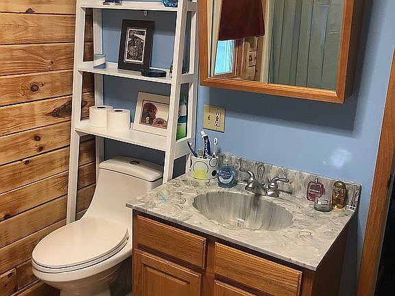 Enjoy a private country setting in this beautiful log home. Warmth and charm abound with the open staircase separating the spacious living room and dining/kitchen area. Master bedroom on first floor, full bath, laundry, w/lg utility room. Two bedrooms and full bath upstairs. Plenty of closet and storage space. Full length front porch. Newer large storage building.