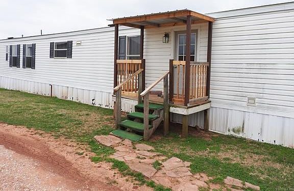 Cute mobile home on ten acres, minutes from Konawa. 40 x 50 shop building with concrete floor, one roll up door and electric. Shipping container stays. Land partially cleared, partially wooded. Nice quiet location close to town.
