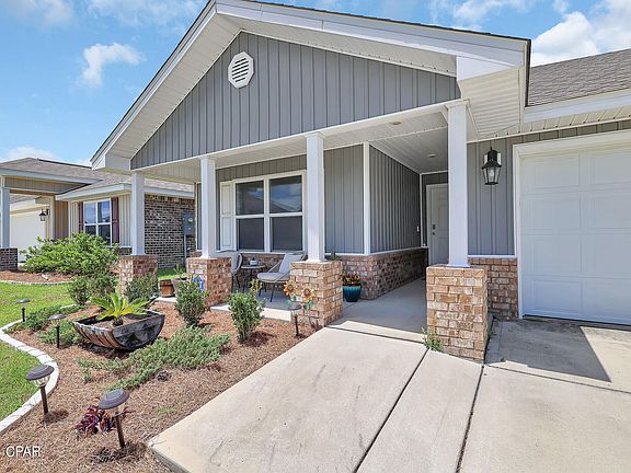 Welcome to your new home located in Titus Park! This rare 3-sided brick Ryder home has 4 bedrooms with 2 full bathrooms. Features a bright and open floor plan, with a large living room, a modern kitchen with stainless steel appliances, and a cozy dining area. The master bedroom boasts two walk-in closets and an en-suite bathroom. Outside, the home offers a lovely backyard with a patio, perfect for outdoor entertaining. With its convenient location near schools, parks, and shopping, this home is ideal for anyone looking for comfort and convenience. This home is located between Tyndall Air Force Base and NSA Panama City with a short commute to each. Titus Park has also started construction for a brand-new community POOL that should be completed by summer of 2025! Don't miss the opportunity to make this wonderful property your new home!