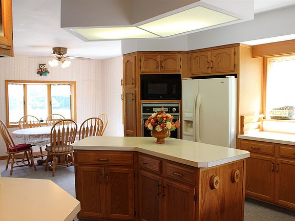 Built into the side of a hill and situated on almost an acre in the country, this ranch home features a custom kitchen with a center island, an abundance of counter and cabinet space, and a breakfast nook for casual dining. In addition to the living room and three seasons porch, the main level has two bedrooms and a full bath. The walkout lower level has an additional bathroom, family room, laundry area, and kitchenette providing additional private living space. Great storage in the 2 car attached garage plus 1 car attached garage. Newer furnace.