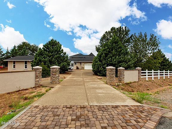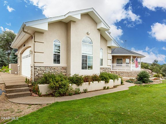 MUST SEE! The peaceful feeling surrounding this home can not be put into caption. This gorgeous, custom home is almost completely private and is nestled near the base of Granite Mountain. Panoramic views from every window and there are many! Perfect, 2.49 acre lot with Granite boulders and mature trees surrounding the property - Main level living with wrap around porch - Security alarm and fire sprinkler system - Granite counter tops and hickory cabinetry - Hardwood oak floors and new carpet on main level - 2nd master suite with private balcony overlooking the property - Living room is adorned with gorgeous stone fireplace and master bedroom double-sided fireplace - Oversize laundry room and central vac - Music & intercom system - White fence surrounds property -396 Sq ft detached garage
