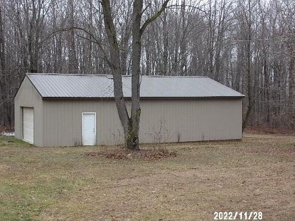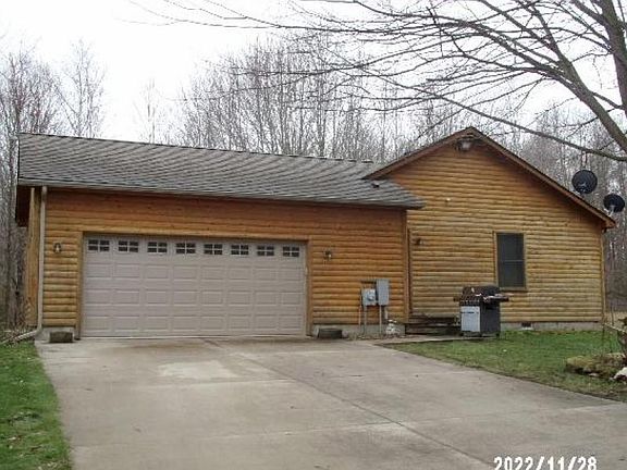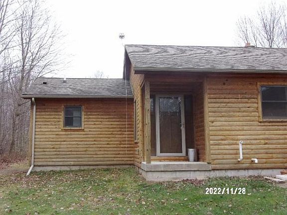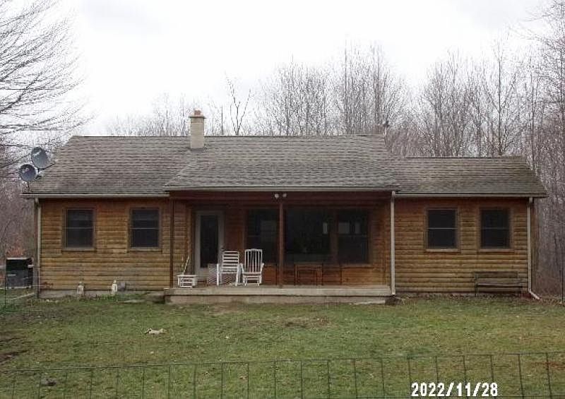 100% Wooded property with Two Bedroom Two bath 1/2 log exterior ranch home with two car attached garage. Extra insulation in ceilings and wall along with good Hurd windows. LP gas forced air heating system with central air along with top quality Wood Stove to help heat this quality custom built home. Open concept Kitchen-Dining-Living room (19.5 x 29) with Hand scraped oil finished Hickory flooring, Blue Pine Ceiling and great view out the living room to back yard and patio. Master Bedroom (16 x 16) has walk-in closet with Master Bathroom (7 x 9) with walk-in shower (Tiled) Second Bedroom is 10 X 14 and is just off the second full bathroom (5 x 8) with ceramic tile flooring. Extra deep crawl space off the garage gives plenty of storage room. Beautiful 40 acres of woods has lots of Deer, Turkeys and other wildlife. Pole barn is 30 x 48 and has cement flooring, 16' overhead door with opener, 10' ceilings and electrical. Also garden area and small chicken Coop (chickens included if you want). Secluded living on this 40 wooded acres and newer Ranch home. A must see property.