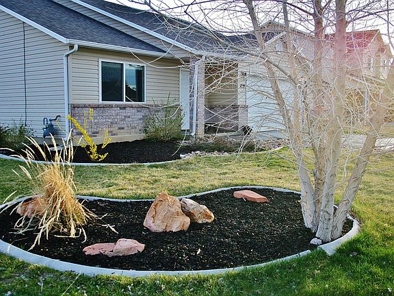 Tastefully finished with NEW soft grey paint, NEW medium - dark laminate wood flooring. Stainless steel / black appliances. Open Vaulted ceilings, NEW GRANITE COUNTER TOPS in KITCHEN. Also new sink and disposal..