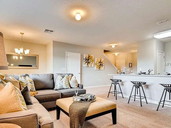 **UNDER CONSTRUCTION ** Welcome to Lake Bluff at Town Center East!! A New Town Home community located on the corner of Ronald Reagan Parkway and Old Lake Wilson Road. This Beautiful New Town Home community is centrally located in the city of Davenport, just minutes from Shopping, Restaurants and Disney. Lake Bluff is a gated community that offers a resort style community pool. With Block construction upstairs, downstairs and in between the homes, which help keep your home Cool, keep energy costs Low and makes noisy neighbors not a problem. No assigned parking here, all our homes have a One car Garage with a 2 car Driveway. You will enter to an open floor plan with a breakfast nook in the Kitchen and a spacious living room/ dining room combo. A 3 Panel Sliding Glass door welcomes you to the 8'x22' covered lanai that has a Magnificent Conservation View. Upstairs you have your Master Bedroom with French doors that opens up to plenty of closet space and a Master Bath with dual sinks. This home also comes with a Laundry Room which includes loads of room for your hampers. Our Town Homes come with all appliances including window treatments(Blinds)(Verticals) and are move in ready. Come check us out today!!!!!!! *Photos are of similar model but not that of exact house. Please note that no representations or warranties are made regarding school districts or school assignments; you should conduct your own investigation regarding current and future schools and school boundaries.*