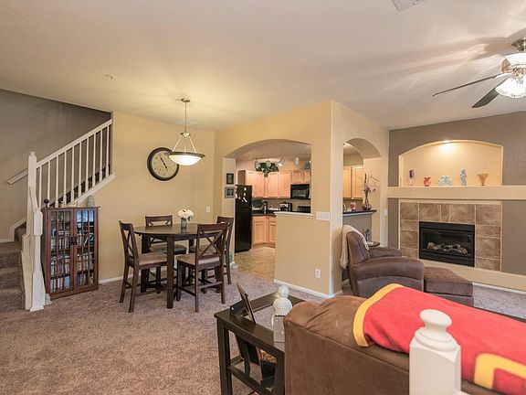GORGEOUS 2 BEDROOM 2 BATH CONDO WITH GREAT VIEWS, GARAGE AND MUCH MORE! This home is in exceptional condition & very clean. The main floor includes large family room with gas fire place, timeless design & architecture, large windows, west facing balcony with mountain & sunset views, huge kitchen with tons of cabinets, counter space & over-sized pantry and spacious dining area. The 2nd floor features a large master bedroom with his & her closets, master bath with jetted tub & dual vanity, a over-sized 2nd bedroom, upper level laundry and a secondary bathroom. Both Bedrooms have great views! This home also boasts, new carpet, new A/C unit, fresh paint, on trend light & hardware fixture, garage and an additional reserved parking space. This home is also equipped with home automation including a "SmartThings" hub, keyless door entry, smart thermostat, water detector for hot water heater and a Nest camera. The grounds are impeccably maintained & has a large pool and common area w/clubhouse.