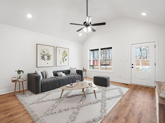 Adorable new construction ranch style home sitting on .75 acres ready for her first owner! Nice open floor plan with natural light though-out. Large living room with vaulted ceilings. Kitchen has granite counter tops, stainless steel appliances and eat at island. Generous sized bedrooms throughout. Primary bedroom has double vanities and large walk in closet. Back porch over looks the beautiful trees and nature.