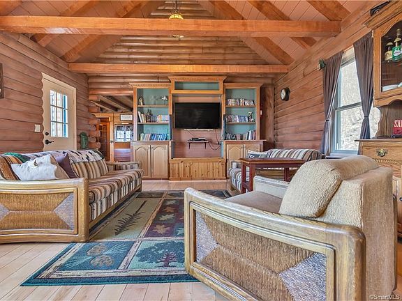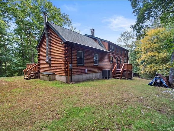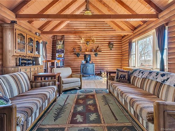 A private retreat at the end of your day. An exploration of the wonders of your backyard. A log home that combines country living with modern convenience. This unique property gives you 20 secluded acres of land, surrounded by over 400 acres of a private land trust. Use trails to journey up to the mountain overlooking Anderson Pond, pick apples from the trees on your property, and enjoy time outdoors on the wrap around deck or next to the fire pit. Inside, the spacious main level is comfort combined with rustic elegance. The kitchen, completely renovated with amenities for a seasoned chef, features a wood stove with stone backing. You have three large living spaces to gather with loved ones, or turn one into an office, playroom, or fitness area to satisfy your needs. This home has a high- efficiency heating/cooling system to keep you comfortable year-round, is wired for a backup generator, and provides plenty of storage inside and out. Call today for your private showing.